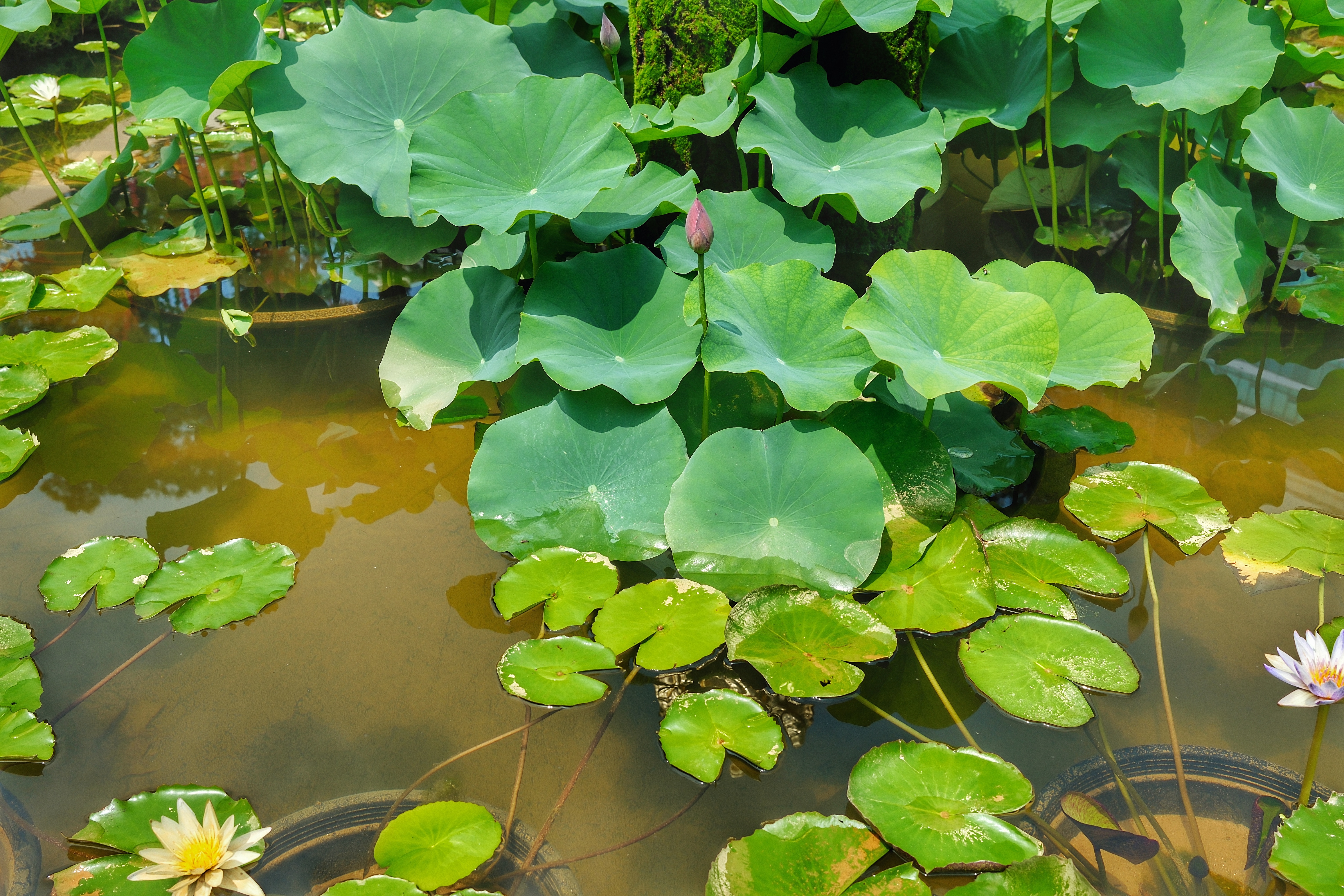 곧 있으면 피어날 연꽃과 연잎.