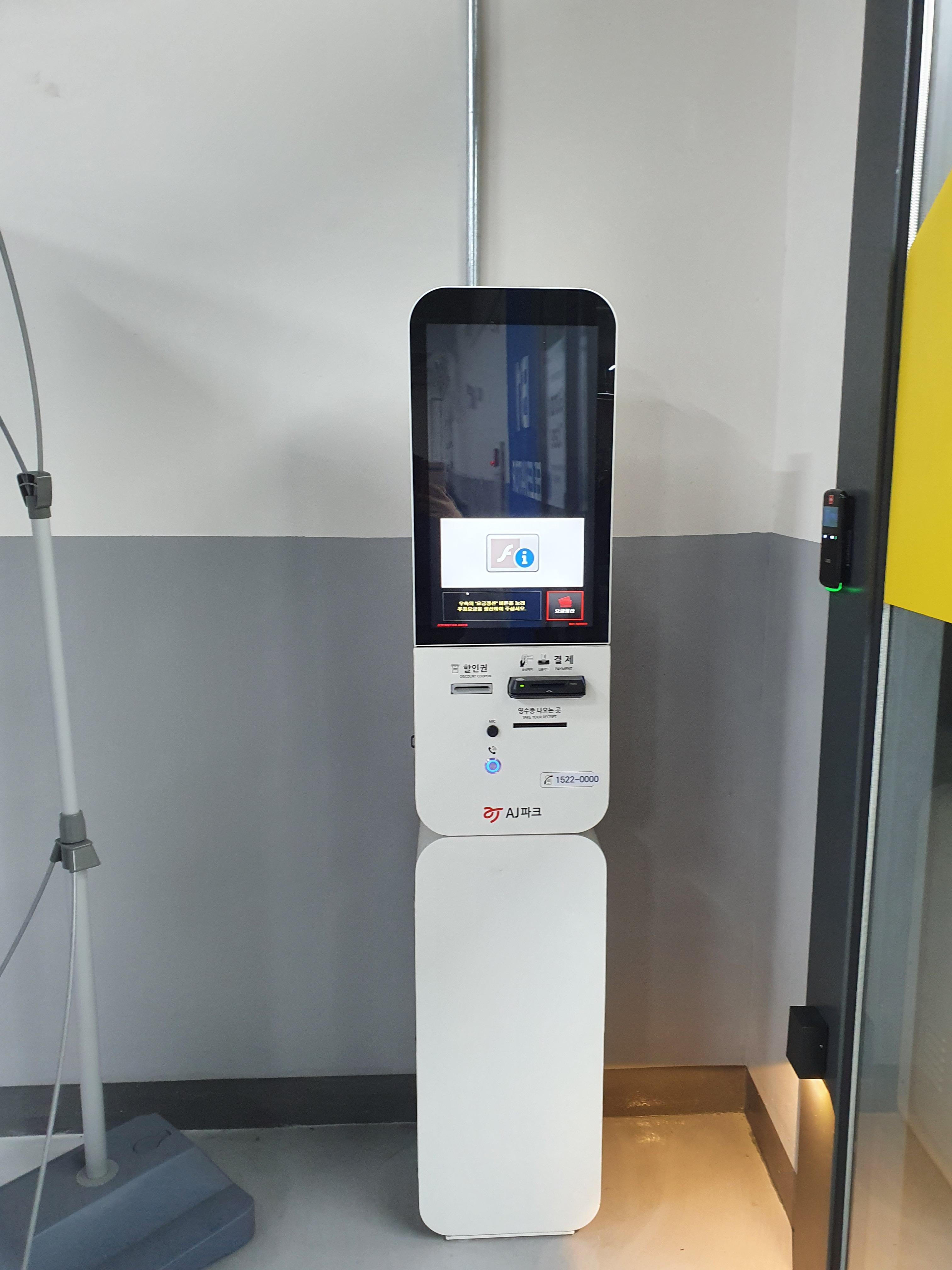 주차공간 사진은 못 찍었지만 깔끔하고 주차하기 편했다. 그리고 주차장에서 엘리베이터로 가는 길목에 주차요금정산 안내표가 있고, 그 옆에는 KIOSK가 배치되어 있었다. 매장을 방문하여 서비스를 받았을 경우, 매장 직원에게 정산 요청을 하면 KIOSK 이용을 굳이 하지 않아도 된다. 기본 30분 3,000원이고, 추가 10분당 1,500원이란다.