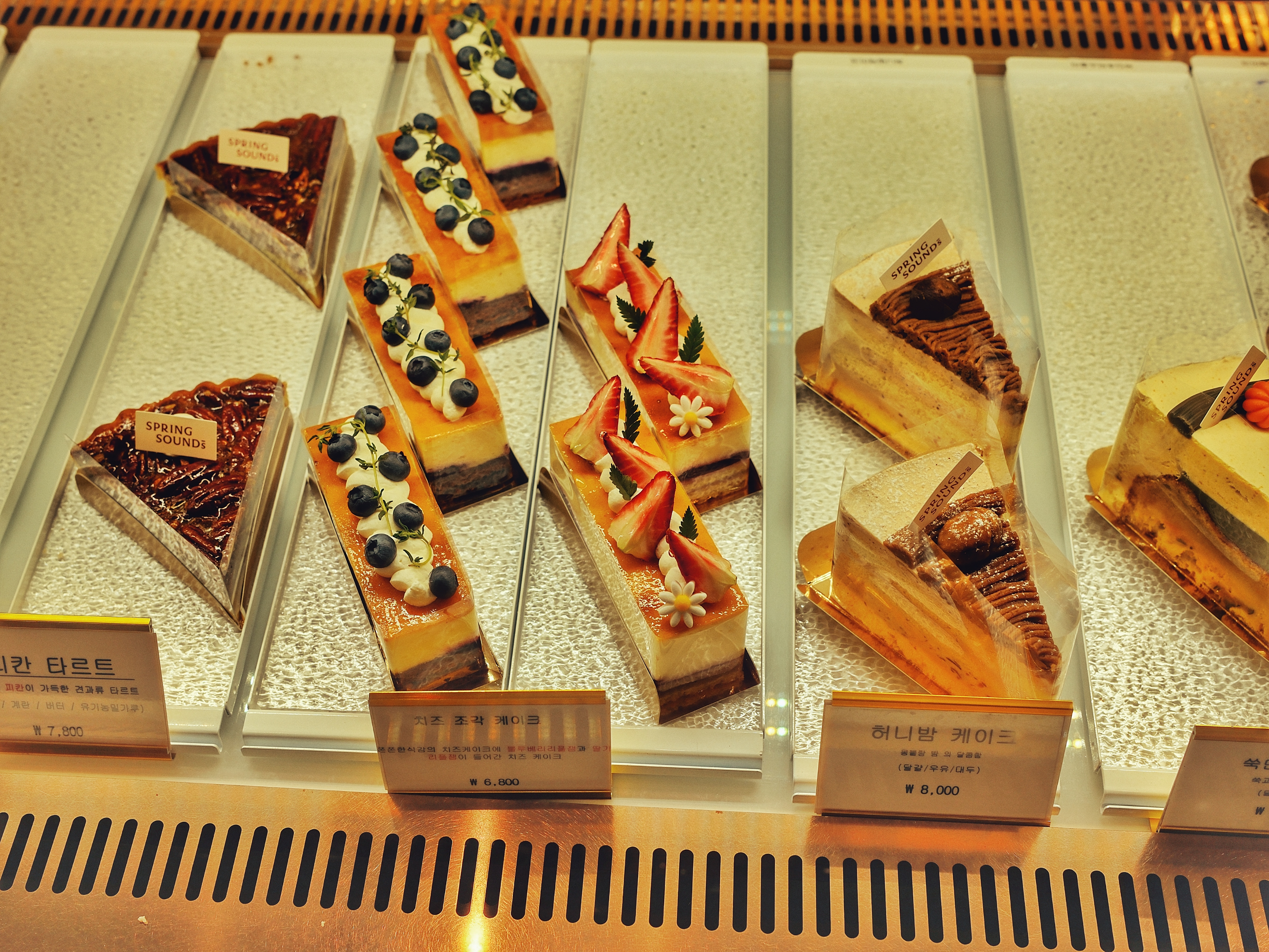 주문하려고 기다리는데, 조각 케이크도 예쁘고 먹음직스러운 것들이 많았다.